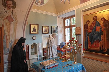 5 сентября 2020 года, в день отдания праздника Успения Божией Матери, на подворье Покровского Хотькова ставропигиального женского монастыря в Горошкове, председатель Синодального отдела по монастырям и монашеству архиепископ Каширский Феогност возглавил Божественную литургию.