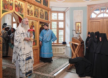 По окончании Литургии владыка Феогност обратился к сестрам и прихожанам обители с отеческим словом.