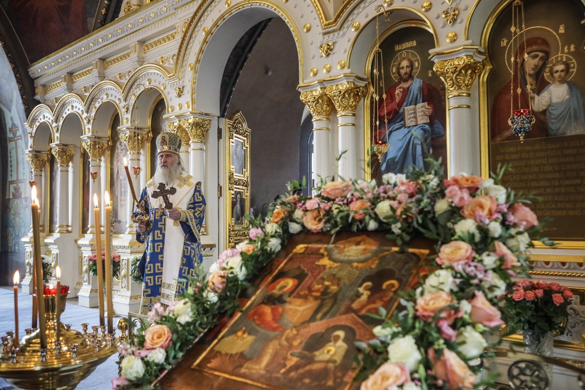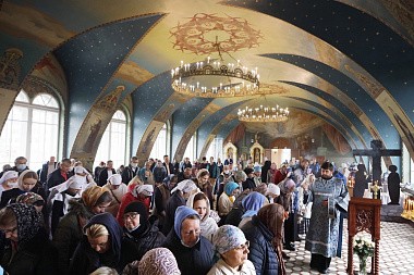 После крестного хода архиепископ Феогност передал игумении Викторине с сестрами, прихожанам и паломникам поздравление Святейшего Патриарха Московского и всея Руси Кирилла с престольным праздником обители и Первосвятительское благословение и обратился к собравшимся с архипастырском словом. Владыка отметил, что верующие должны помнить о том, что душа больше тела и, что человек призван к вечности. А Матерь Божия и святые – это наши молитвенники, которые помогают идти по земной дороге, среди бурных волн житейского моря, в вечность.