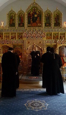 Его Высокопреосвященству сослужило монастырское духовенство.