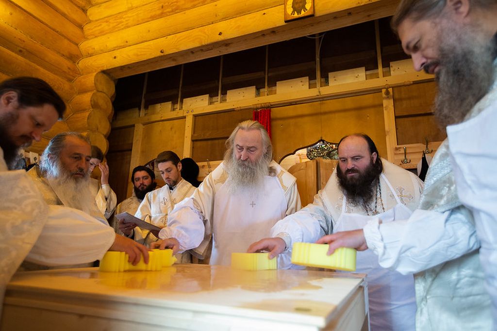 Владыкам сослужили настоятель храма свт. Спиридона Тримифунтского иеромонах Спиридон (Подшибякин), а также насельники Лавры в священном сане.