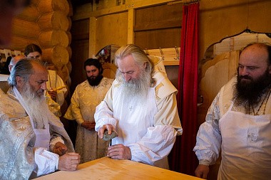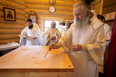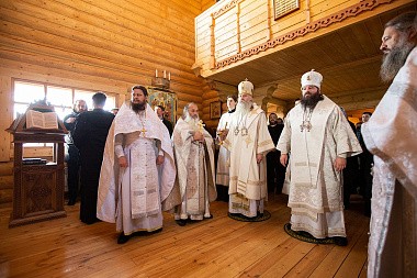 Затем архиепископ Феогност и епископ Парамон совершили Божественную литургию в новоосвященном храме.