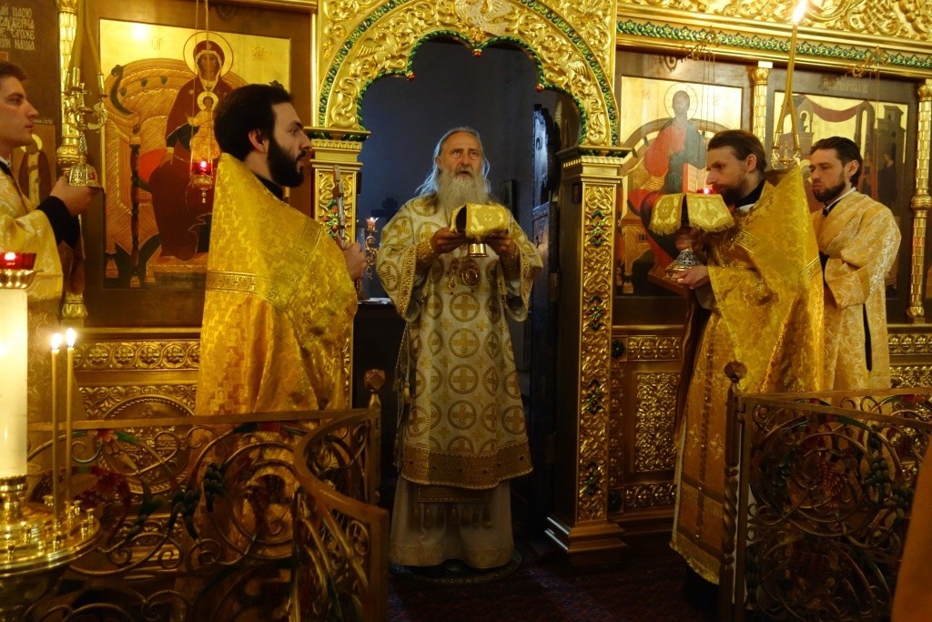 Его Высокопреосвященству сослужило духовенство обители.