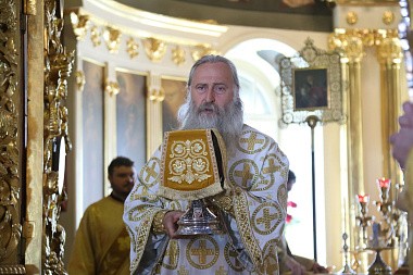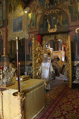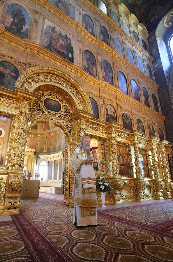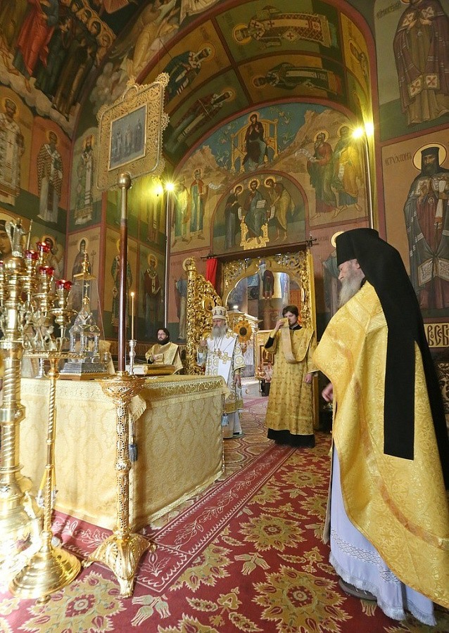 Его Высокопреосвященство возглавил раннюю Литургию в Успенском соборе обители.
