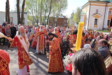 Его Высокопреосвященству сослужили братия Свято-Троицкой Сергиевой лавры в священном сане и духовенство Покровского Хотькова монастыря.