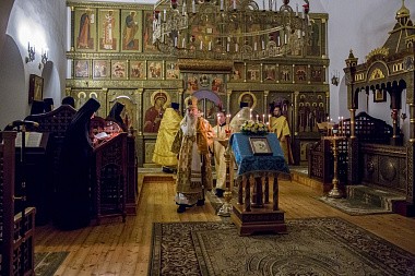 Его Высокопреосвященству сослужили клирики Стефано-Махрищского монастыря.