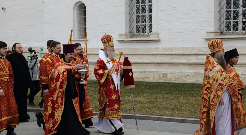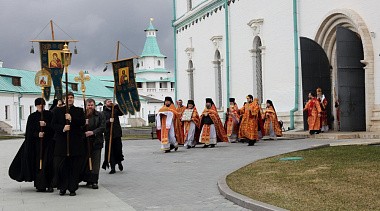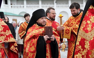 В Воскресенском соборе обители Его Высокопреосвященству сослужили наместник Воскресенского Ново-Иерусалимского монастыря архимандрит Феофилакт (Безукладников) с братией обители в священном сане.