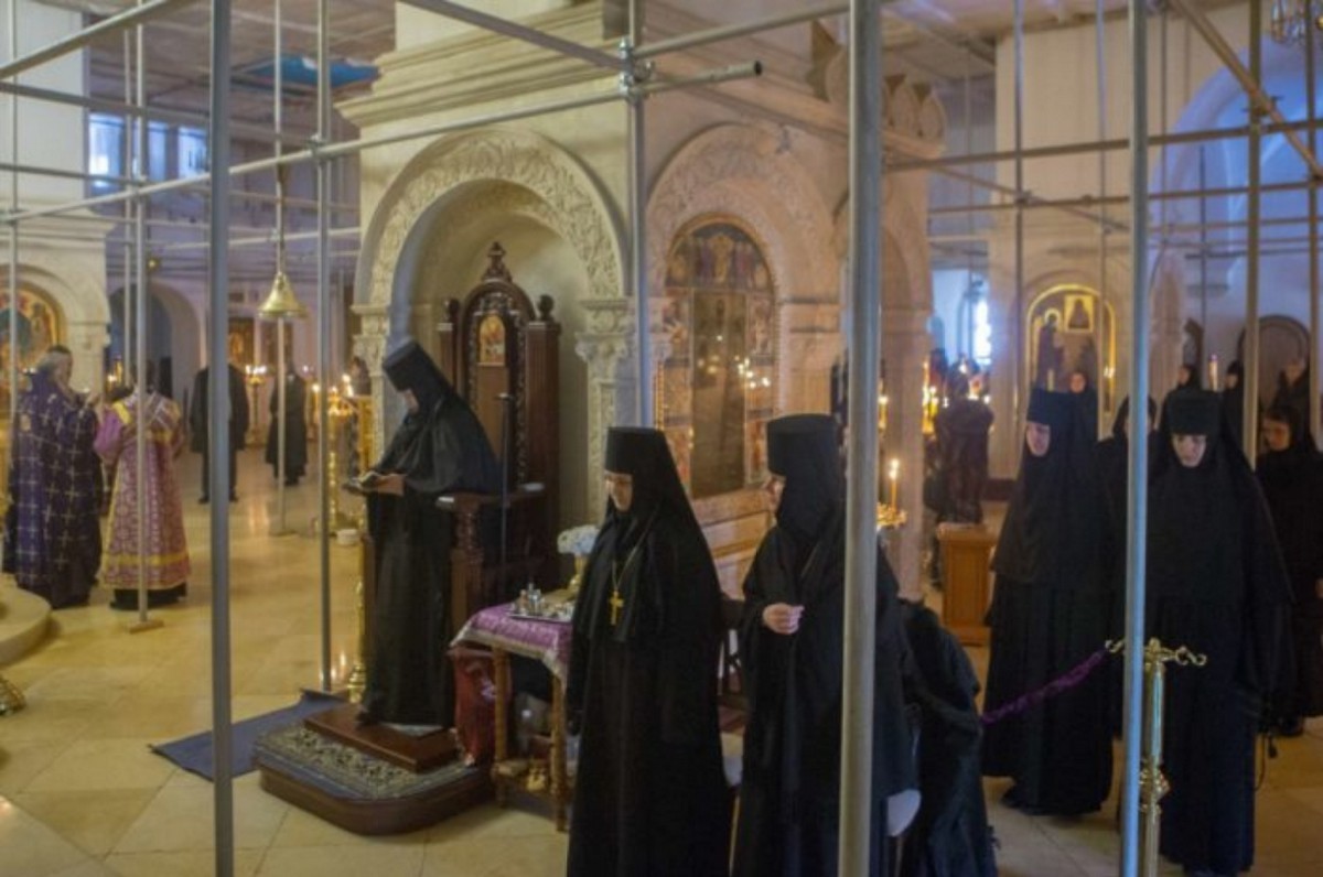 В монастырском соборе Рождества Пресвятой Богородицы Его Высокопреосвященству сослужили заместитель председателя Синодального отдела по монастырям и монашеству архимандрит Стефан (Тараканов) и духовенство обители.