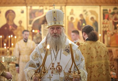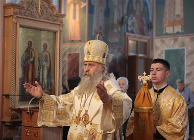 В завершение Его Высокопреосвященство обратился с архипастырским словом к молящимся, в котором особо отметил подвиг святой праведной диаконисы Олимпиады – служение ближним и смирение пред Промыслом Божиим, – и вручил имениннице цветы.