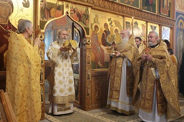 По прибытии в обитель владыка Феогност поклонился честным мощам преподобных Кирилла и Марии Радонежских, родителей преподобного Сергия Радонежского.