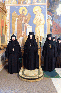 Матушка, за Вас радуемся: монастырь благоукрашается, храм дивный... Входишь в храм и думаешь: где ты? на земле или на небе? Паломникам благочестивым и сестрам только одного пожелаем: благодарить Бога, радоваться и никогда не скорбеть, потому что за всё нужно благодарить Бога, за всё. И наша радость – это исполнение заповеди блаженства: "Радуйтесь, и паки реку: радуйтесь, яко мзда ваша (наша) многа на Небесех"».