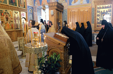 В этот день Божественную литургию в монастыре возглавил председатель Синодального отдела по монастырям и монашеству архиепископ Сергиево-Посадский Феогност, наместник Свято-Троицкой Сергиевой лавры.