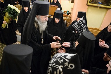 По окончании Божественной литургии архиепископ Феогност передал игумении Феофании поздравление Святейшего Патриарха Московского и всея Руси Кирилла по случаю дня ее тезоименитства.