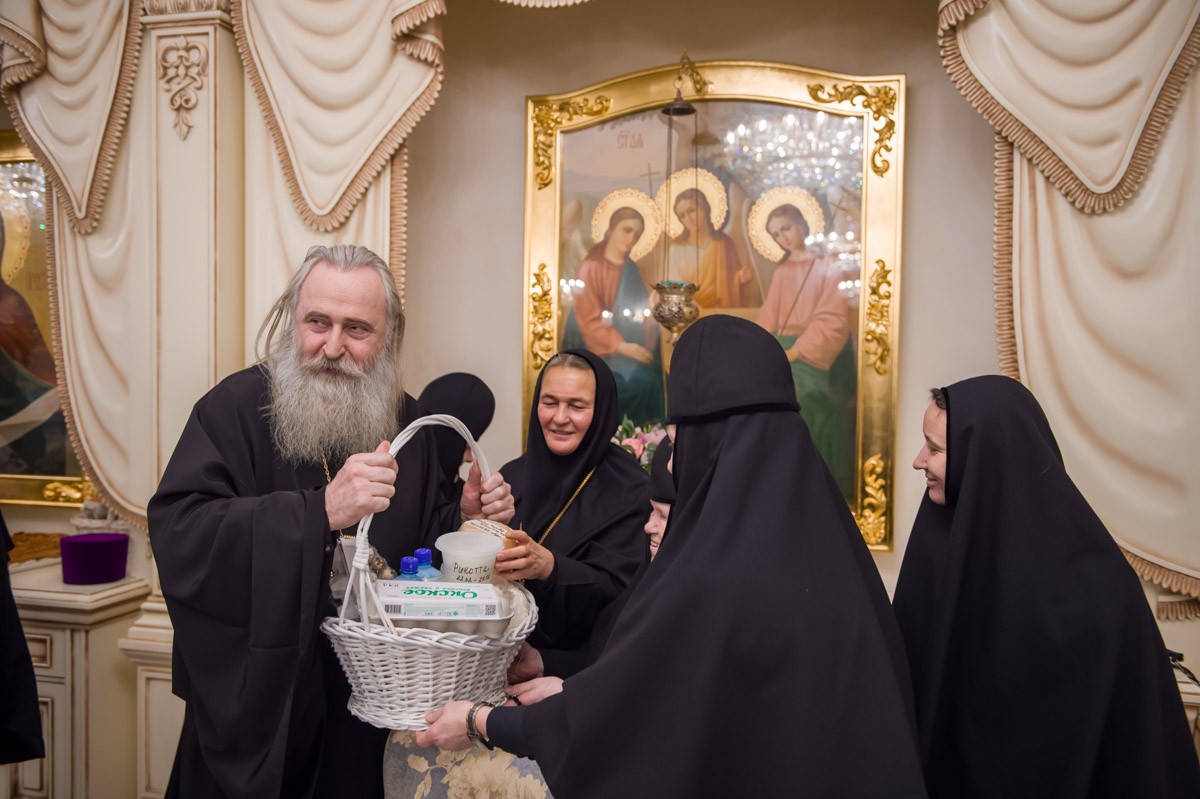 За праздничной трапезой матушка Феофания поделилась своими воспоминаниями о начале возрождения обители. Всем присутствовавшим были продемонстрированы архивные видеоматериалы 1995–1997 гг., на которых запечатлены первые годы возрождения монастыря.