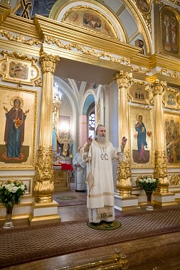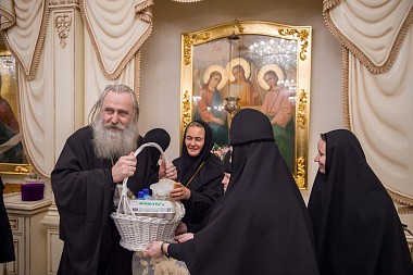В этот день Божественную литургию в соборе Воскресения Словущего возглавил председатель Синодального отдела по монастырям и монашеству архиепископ Каширский Феогност.