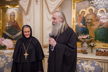 Подъяв четверть века назад начальственные труды в открывшейся вновь обители у Покровской заставы Москвы, Вы, по слову Псалмопевца, старались работать Господеви со страхом и радоваться Ему с трепетом (Пс. 2:11). За минувшие многие годы Вы внесли весомый вклад в возрождение иноческой жизни в монастыре, в воссоздание его былого благолепия и всестороннее развитие деятельности обители. Особо хотел бы отметить Ваши усердие и ответственность, с которыми Вы исполняете возлагаемые на Вас Священноначалием различные послушания.