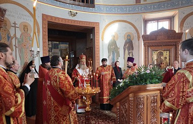 Его Высокопреосвященству сослужило монастырское духовенство.