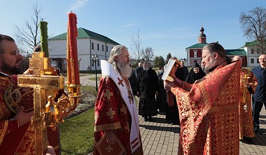По окончании крестного хода Его Высокопреосвященство передал настоятельнице обители игумении Марии (Солодовниковой) поздравление Святейшего Патриарха Московского и всея Руси Кирилла по случаю 60-летия со дня рождения: