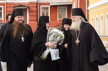 Затем архиепископ Феогност передал игумении Викторине поздравление Святейшего Патриарха Московского и всея Руси Кирилла по случаю дня тезоименитства: