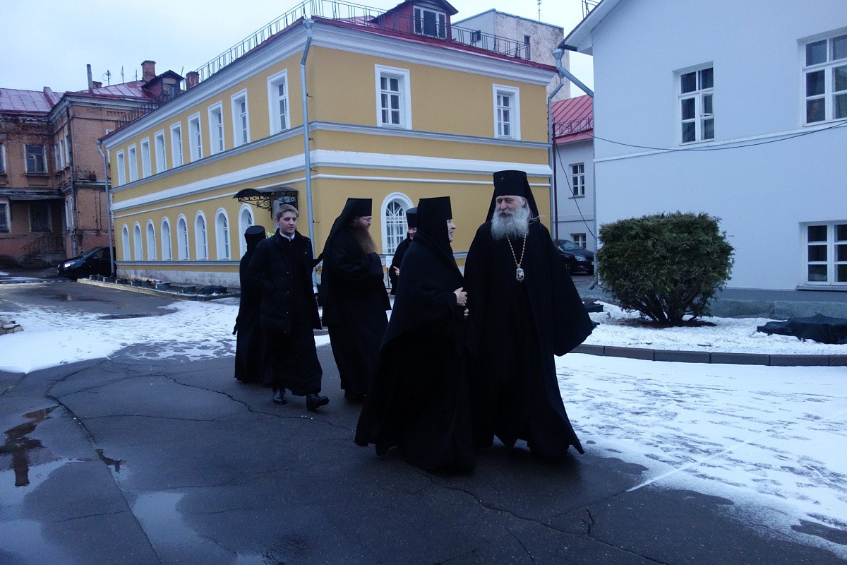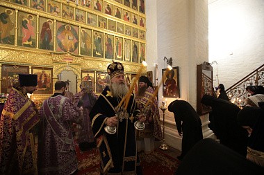 Его Высокопреосвященству сослужили заместитель председателя Синодального отдела по монастырям и монашеству, настоятель Московского подворья Свято-Троицкой Сергиевой лавры архимандрит Стефан (Тараканов) и духовенство обители.