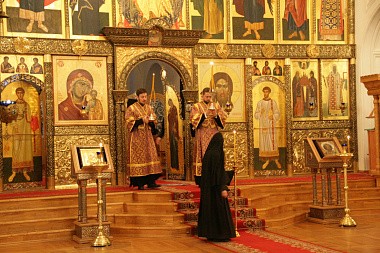 Вечером этого дня, накануне Недели 2-й Великого поста, дня памяти свт. Григория Паламы, архиепископа Фессалонитского, Его Высокопреосвященство возглавил воскресное всенощное бдение в Казанском соборе монастыря.