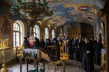 За богослужением возносились сугубые благодарственные прошения о здравии настоятельницы монастыря игумении Иулиании (Каледы) по случаю ее дня рождения и сестер обители.