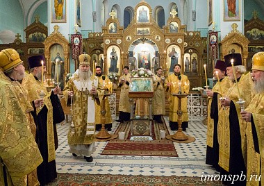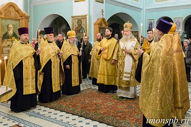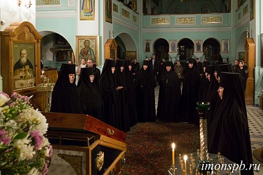 По окончании всенощного бдения владыка Феогност вместе со священнослужителями, матушкой игуменией, сестрами и прихожанами спустился в храм-усыпальницу святого праведного Иоанна Кронштадтского, где прочитал молитву святому.