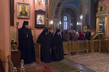 Его Высокопреосвященству сослужили клирики Покровской обители и братия Троице-Сергиевой лавры. За богослужением молились настоятельница Покровского монастыря игумения Феофания (Мискина) с сестрами, воспитанницы приюта Покровской обители и прихожане монастыря.