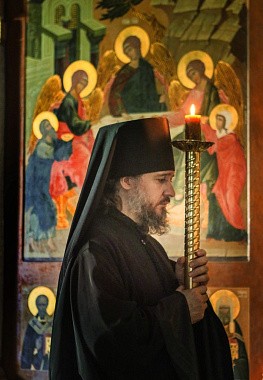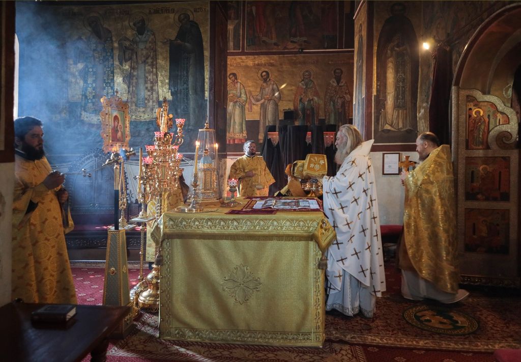 В монастырском соборе Рождества Пресвятой Богородицы Его Высокопреосвященству сослужили наместник обители архимандрит Павел (Кривоногов) с братией в священном сане.