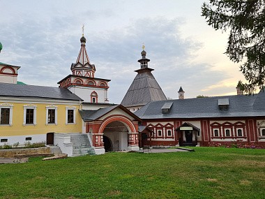 Храм прп. Алексия, человека Божия, был устроен внутри Красной башни над Святыми вратами обители в 1650-х годах.