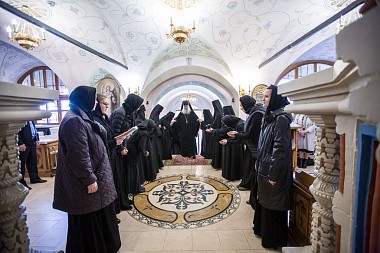За богослужением молились настоятельница обители игумения Феофания (Мискина) с сестрами.