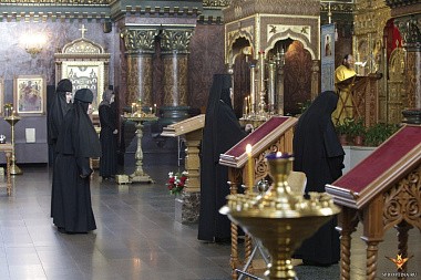 За богослужением молились: заместитель председателя Синодального отдела по монастырям и монашеству, настоятельница Зачатьевского ставропигиального женского монастыря Москвы игумения Иулиания (Каледа); настоятельница Богородице-Рождественского ставропигиального женского монастыря Москвы игумения Викторина (Перминова); настоятельница Полоцкого Спасо-Евфросиниевского женского монастыря игумения Евдокия (Левшук).