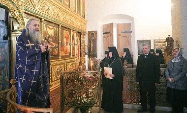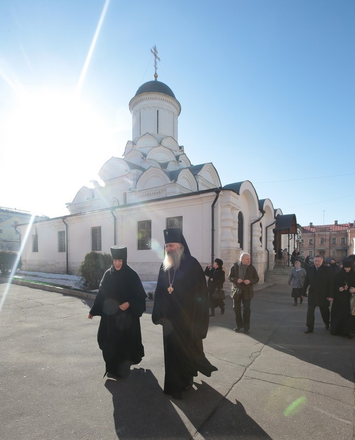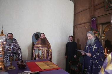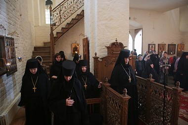 Его Высокопреосвященству сослужили заместитель председателя Синодального отдела по монастырям и монашеству архимандрит Стефан (Тараканов) и духовенство обители.