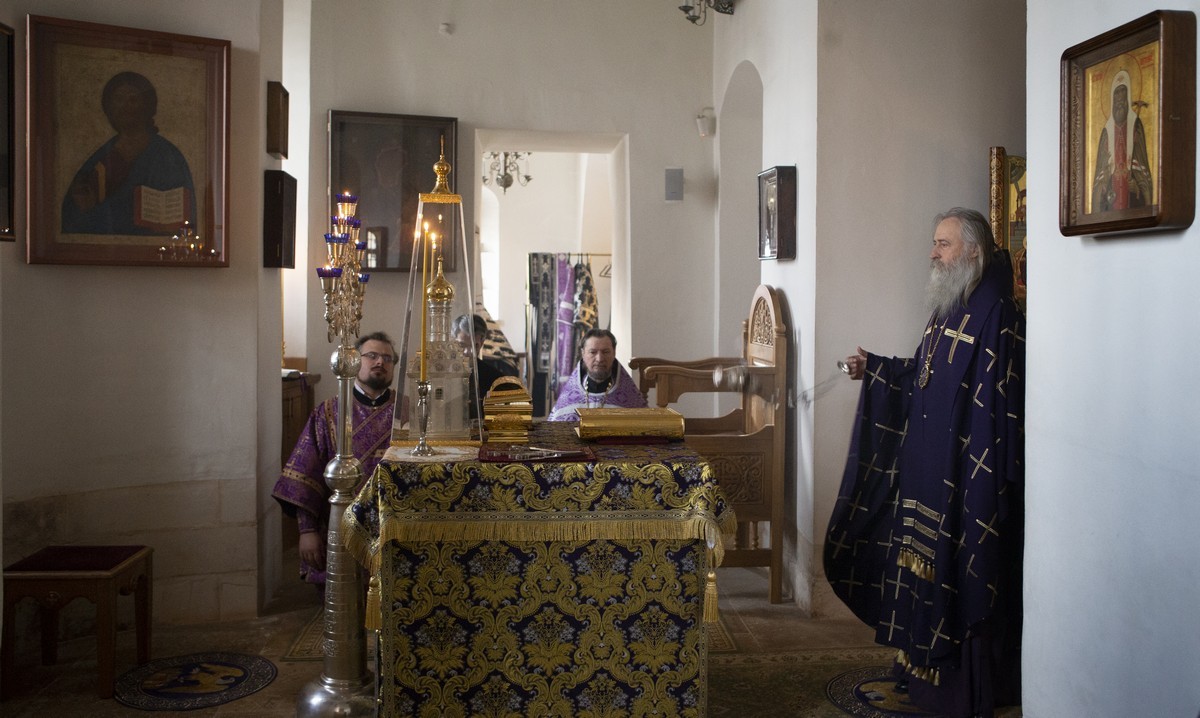 8 апреля 2019 года, во вторник 5-й седмицы Великого поста, председатель Синодального отдела по монастырям и монашеству архиепископ Каширский Феогност совершил Литургию Преждеосвященных Даров с вечерней в Малом соборе Донского ставропигиального мужского монастыря.