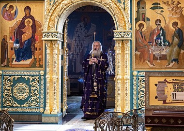 В монастырском храме во имя Святой Троицы Его Высокопреосвященству сослужили священнослужители Стефано-Махрищском обители.