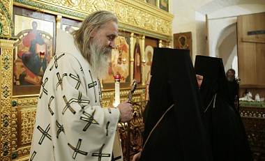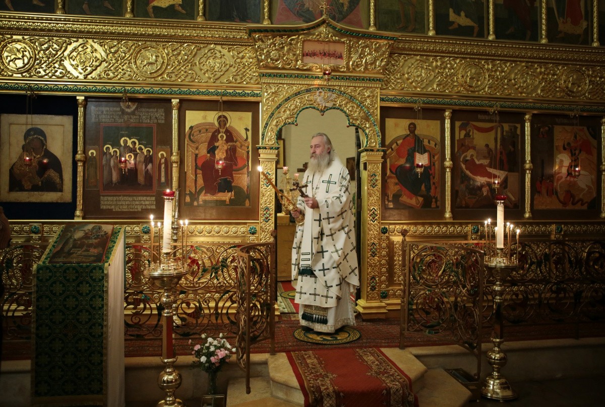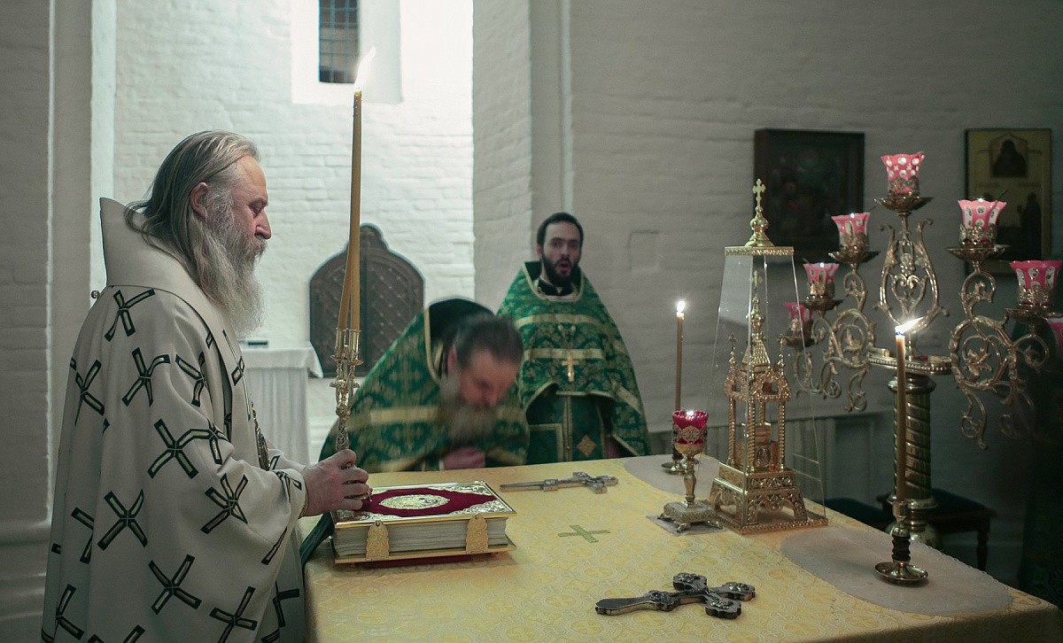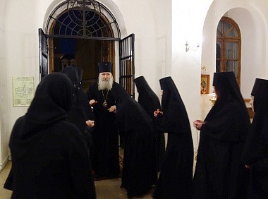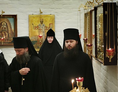 Его Высокопреосвященству сослужило монастырское духовенство.