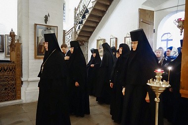 За богослужением молились настоятельница монастыря игумения Викторина (Перминова) с сестрами, зав. канцелярии СОММ Г. В. Филиппова и прихожане обители.