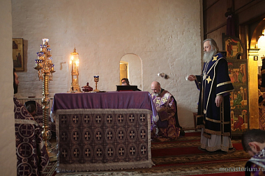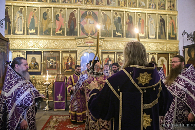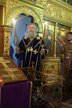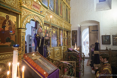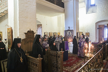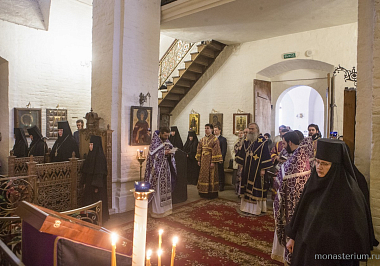 Его Высокопреосвященству сослужили заместитель председателя Синодального отдела по монастырям и монашеству архимандрит Стефан (Тараканов) и духовенство обители. Диаконский чин возглавил протодиакон Владимир Назаркин.