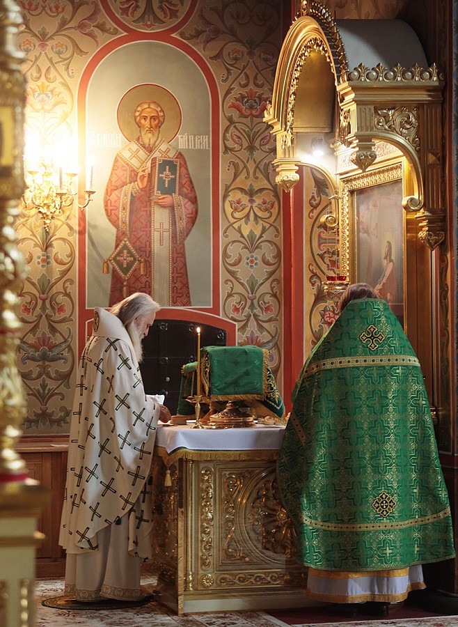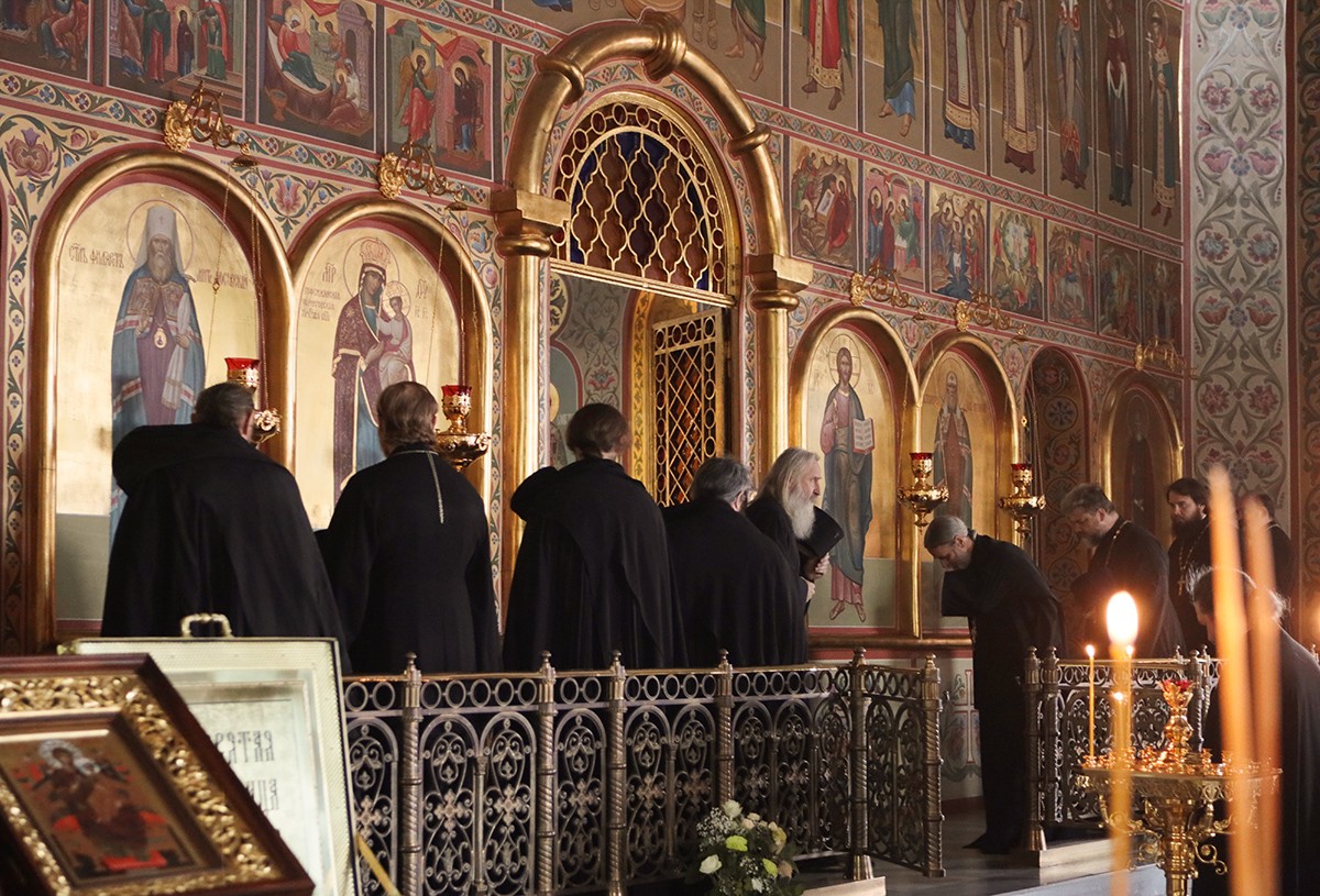 За Божественной литургией в соборе в честь иконы Божией Матери «Черниговская Гефсиманская» Его Высокопреосвященству сослужили настоятель скита архимандрит Дамиан (Швецов) с братией в священном сане.