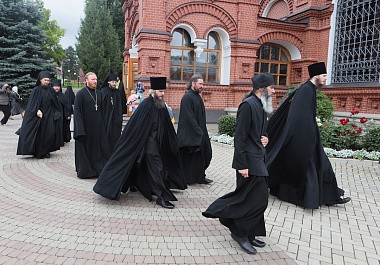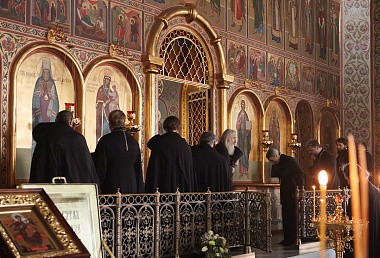 Затем Высокопреосвященнейший владыка Феогност обратился к собравшимся с архипастырским словом о значении Игумена земли Русской в духовной жизни православных христиан.