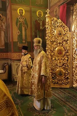 Его Высокопреосвященству сослужили наместник монастыря архимандрит Сергий (Воронков) и священноиноки обители.