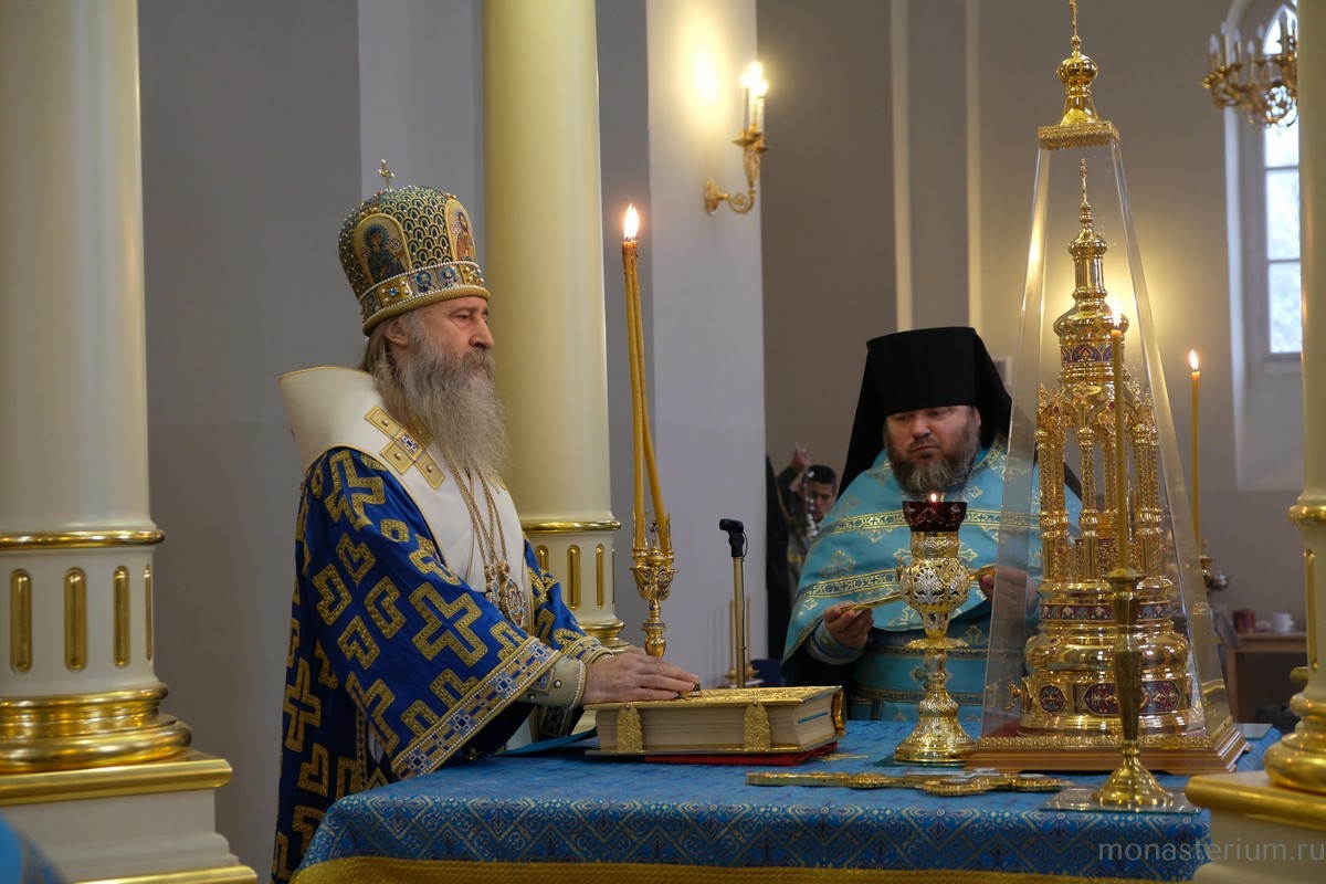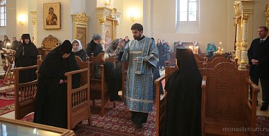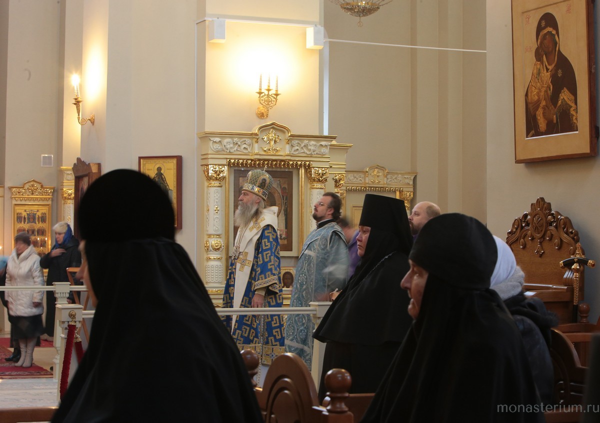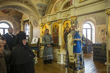 По окончании богослужения был совершен крестный ход в монастырский Иерусалимский храм, где владыка Феогност отслужил молебен перед чтимой иконой Божией Матери Иерусалимской.