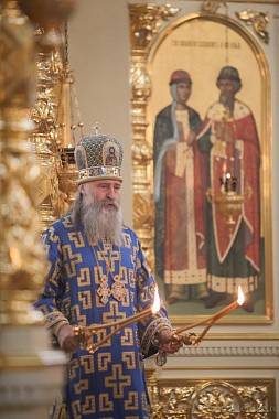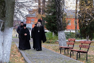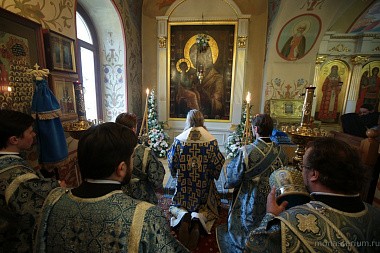 Его Высокопреосвященству сослужили клирики обители.