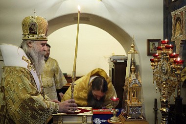 По окончании Литургии было совершено величание преподобномученице Великой княгине Елисавете перед ракой с частицей ее честных мощей и прочитана молитва святой.