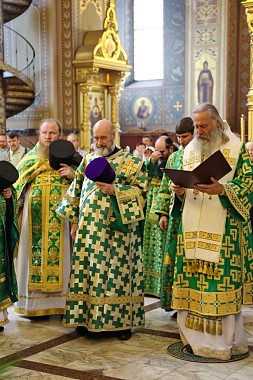 Его Высокопреосвященству сослужили заместитель председателя Синодального отдела по монастырям и монашеству архимандрит Стефан (Тараканов), наместник Николо-Угрешского монастыря игумен Варфоломей (Петров), братия Угрешской обители в священном сане.