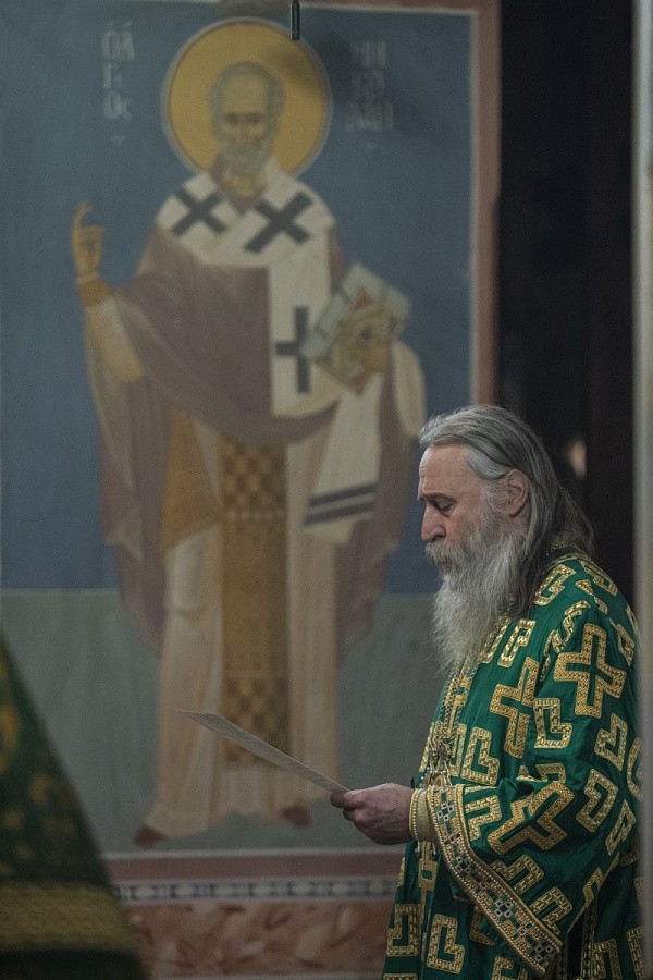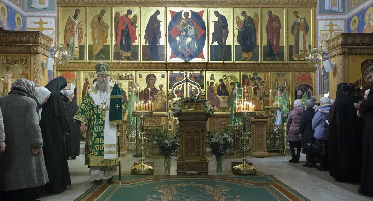 Затем владыка Феогност передал молящимся благословение Святейшего Патриарха Московского и всея Руси Кирилла и поздравление с праздником и обратился к собравшимся с архипастырским словом: