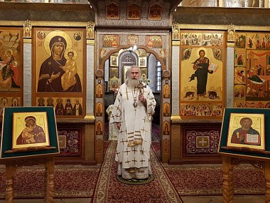 В монастырском соборе Рождества Божией Матери Его Высокопреосвященству сослужили наместник обители архимандрит Павел (Кривоногов) с братией в священном сане.
