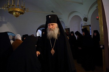 Его Высокопреосвященству сослужили: игумен Филарет (Тамбовский), клирик храма иконы Божией Матери «Всех скорбящих Радость» на Большой Ордынке; иерей Александр Мельников, священник Стефано-Махрищского монастыря; духовенство Троице-Сергиевой лавры.