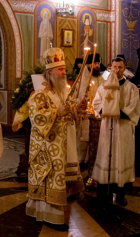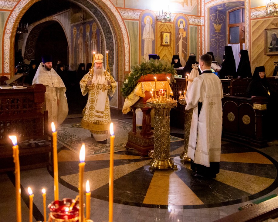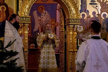 По окончании богослужения владыка Феогност поздравил настоятельницу монастыря игумению Елисавету (Жегалову) и сестер обители, а также прихожан и паломников с праздником Рождества Христова.