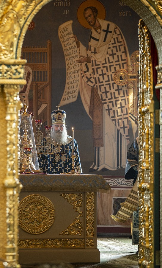 За Божественной литургией Его Высокопреосвященству сослужили: архимандрит Стефан (Тараканов), заместитель председателя Синодального отдела по монастырям и монашеству, настоятель Московского Троицкого подворья Свято-Троицкой Сергиевой лавры; насельники Троице-Сергиевой лавры архимандрит Диодор (Дидковский) и иеродиакон Михей (Соррэ); игумен Филарет (Тамбовский), клирик храма иконы Божией Матери «Всех скорбящих Радость» на Большой Ордынке; благочинный Александровского церковного округа протоиерей Олег Михайлов; клирики Стефано-Махрищского монастыря и подворья обители.